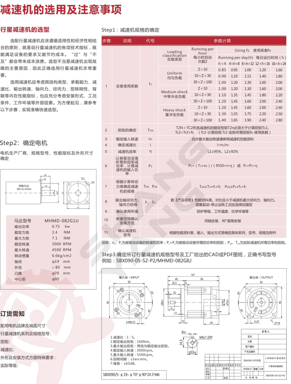 3.規(guī)格選擇要滿足強度、熱平衡、軸伸部位承受徑向載荷等條件。
